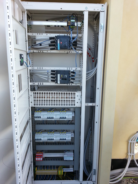 Quadri elettrici di distribuzione secondaria (di piano) modulari su richiesta del cliente, realizzati secondo normativa vigente, per la distribuzione dell’energia e il controllo delle automazioni locali (accensioni luci, linee FM comandate, etc).